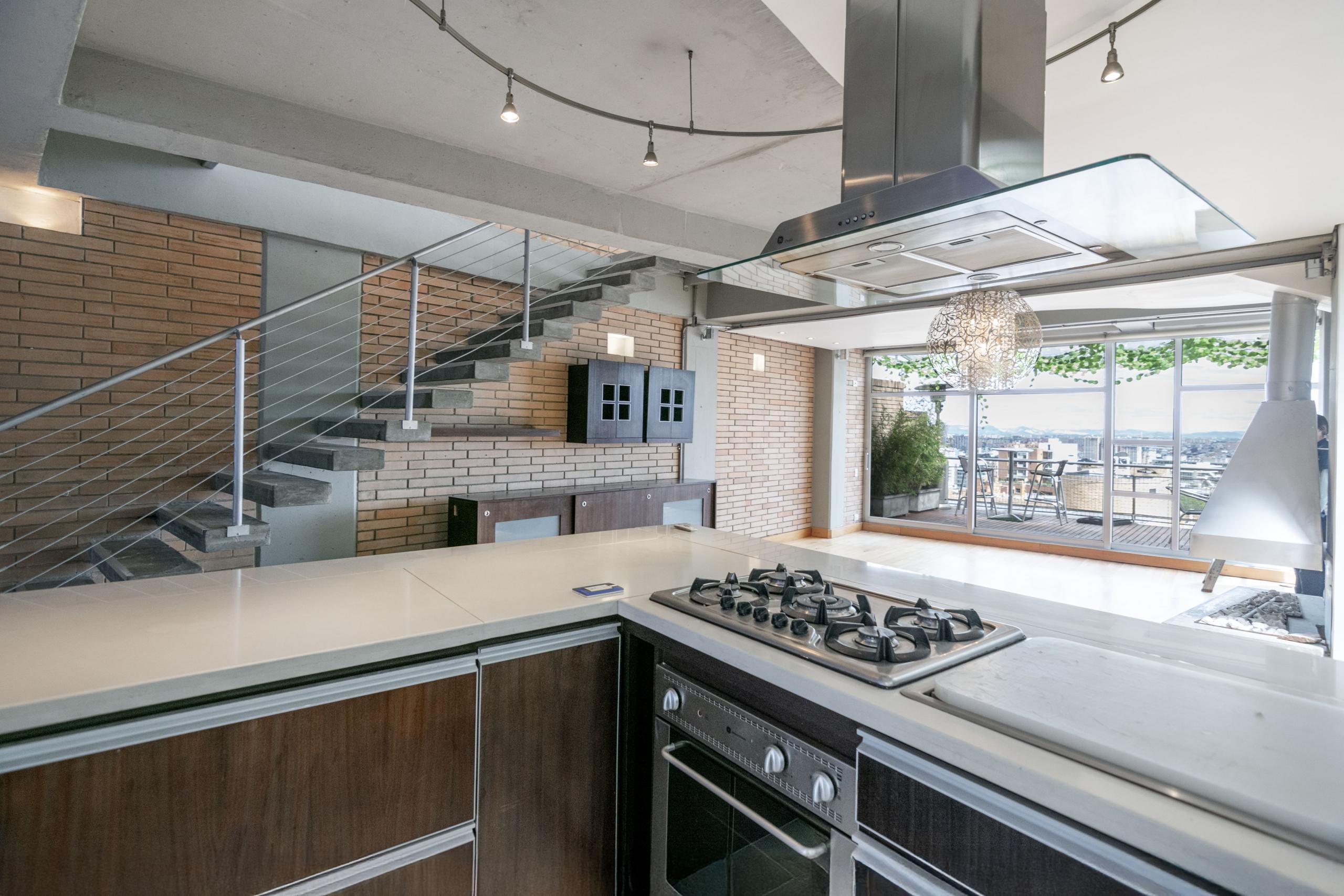 En el primer nivel, se encuentra la zona social, compuesta por una elegante sala y comedor en ambiente abierto, que conecta perfectamente con una cocina tipo americana de concepto abierto, moderna y muy funcional. Este nivel también ofrece acceso directo a una amplia terraza privada de 85 m², un espacio perfecto para disfrutar al aire libre, ya sea en reuniones sociales o simplemente para relajarse en casa. La chimenea a gas le da un toque cálido y acogedor al ambiente.