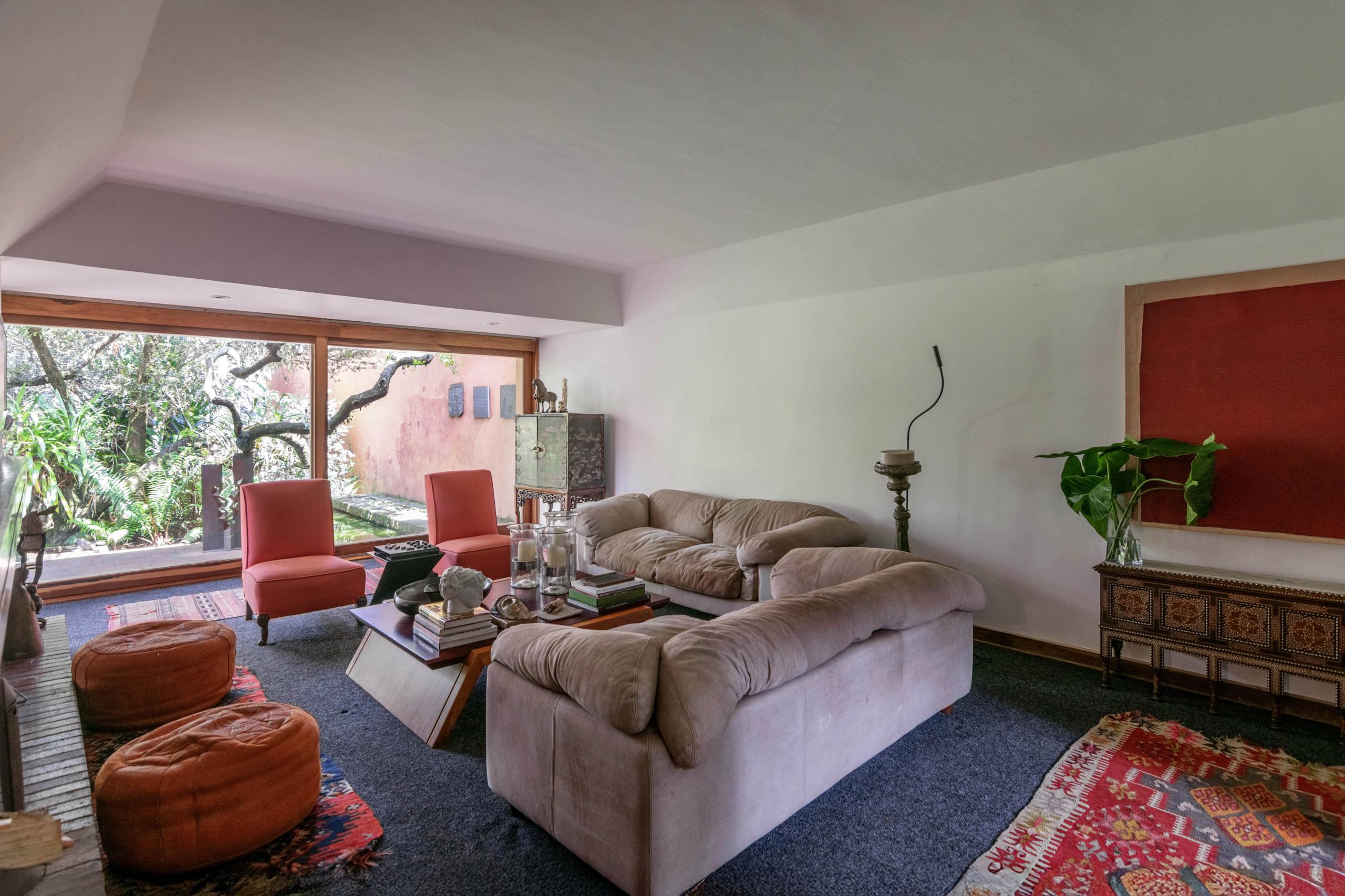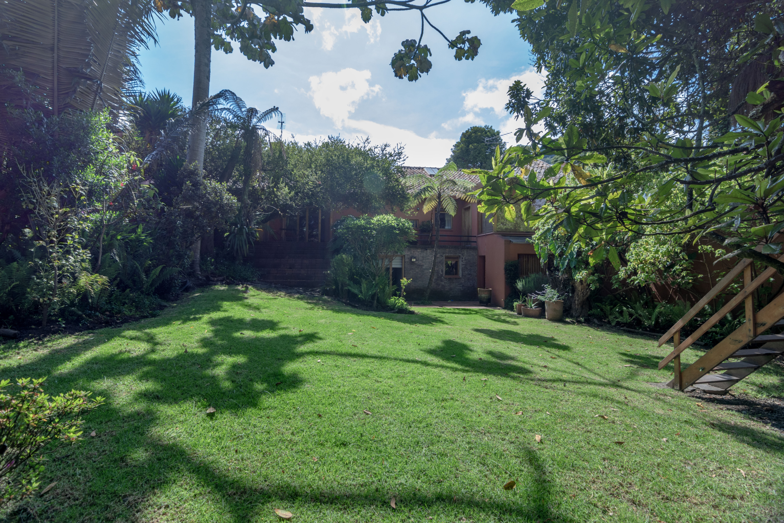 La casa, con 400 m² construidos en dos niveles, ofrece una distribución clásica y generosa ideal para familias. Cuenta con 4 amplias alcobas (principal con baño privado), estudio iluminado y un estar de alcobas que garantiza privacidad. Sus zonas sociales incluyen sala y comedor independientes que se conectan con el verde exterior. Se acompaña de dos cabañas adicionales en la zona del jardin.